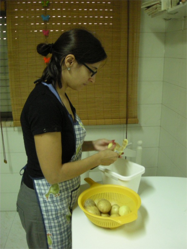 Por norma, estou banida da cozinha enquanto o chef cozinha, mas hoje foi-me permitida a permanência por breves momentos: enquanto descasquei as batatas e temperei umas costeletas para o jantar de amanhã.