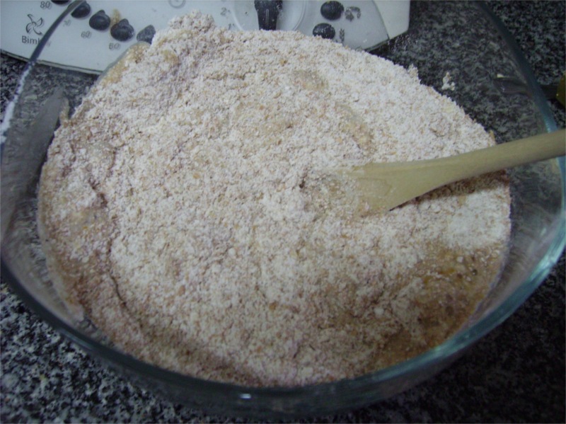 3. Adicionar a mistura à taça da farinha, envolvendo bem.