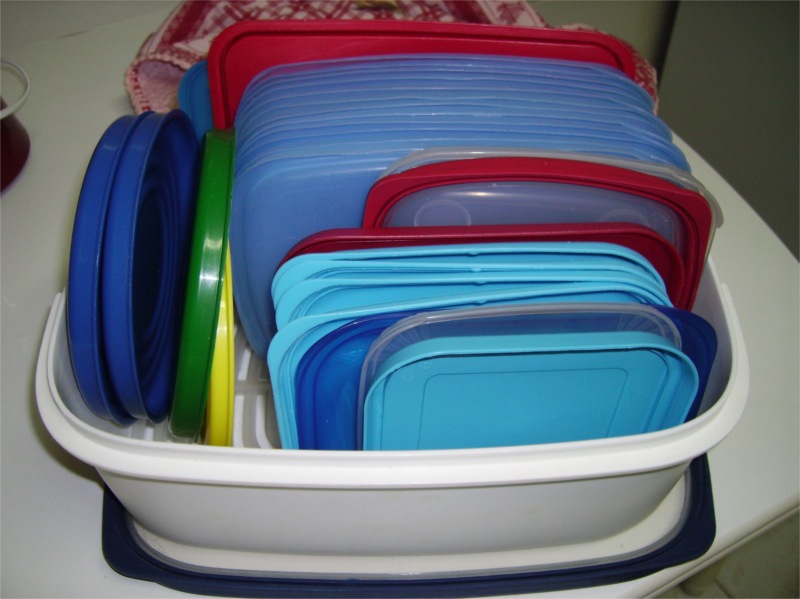 As tampas das caixas são guardadas numa caixa maior (tenho um suporte no armário para as tampas mais pequenas).