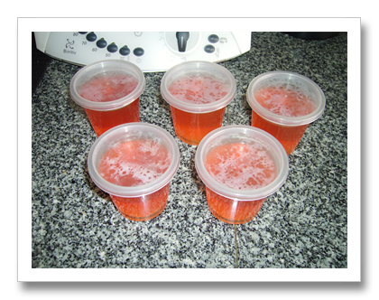 Se alguém se está a questionar sobre os copinhos plásticos que se vêm nas imagens, aqui fica a explicação. Vêm com os queijos frescos que a minha mãe compra na mercearia. A ideia foi da minha mãe… uso-os para a gelatina. Cada pacote dá 5 copinhos destes que são óptimos para levar a gelatina para qualquer lado!