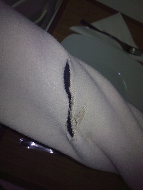Estava a pôr o jantar no forno e encostei o braço à parte da grelha superior do forno. O resultado? Uma camisola estragada!